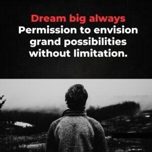 - Dream big always Permission to envision grand possibilities without limitation.