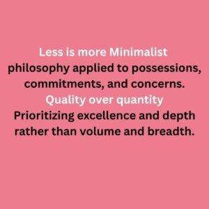 - Less is more Minimalist philosophy applied to possessions, commitments, and concerns.